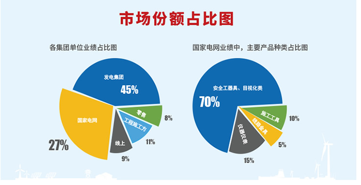 公司以“诚信、品质、创新、和谐”为企业宗旨、“开创电力安全工器具百年品牌”为企业愿景;拥有专利21项,其中发明专利4项、实用新型专利17项;产品销往全国各地,国家电网、南方电网、中国华能集团有限公司、中国华电集团有限公司、国家电力投资集团有限公司、中国大唐集团有限公司、国家能源投资集团有限责任公司、华润电力控股有限公司、中国广核电力股份有限公司、中国长江三峡集团公司、深圳能源集团股份有限公司、中国电力建设集团有限公司跟我公司保持长期合作关系。